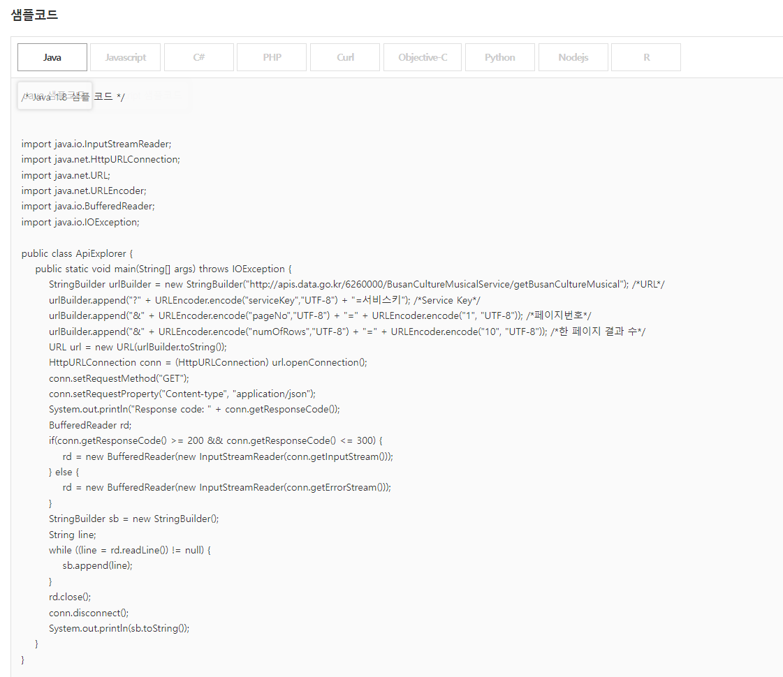 StringBuilder urlBuilder = new StringBuilder("http://apis.data.go.kr/6260000/BusanCultureMusicalService/getBusanCultureMusical"); /*URL*/